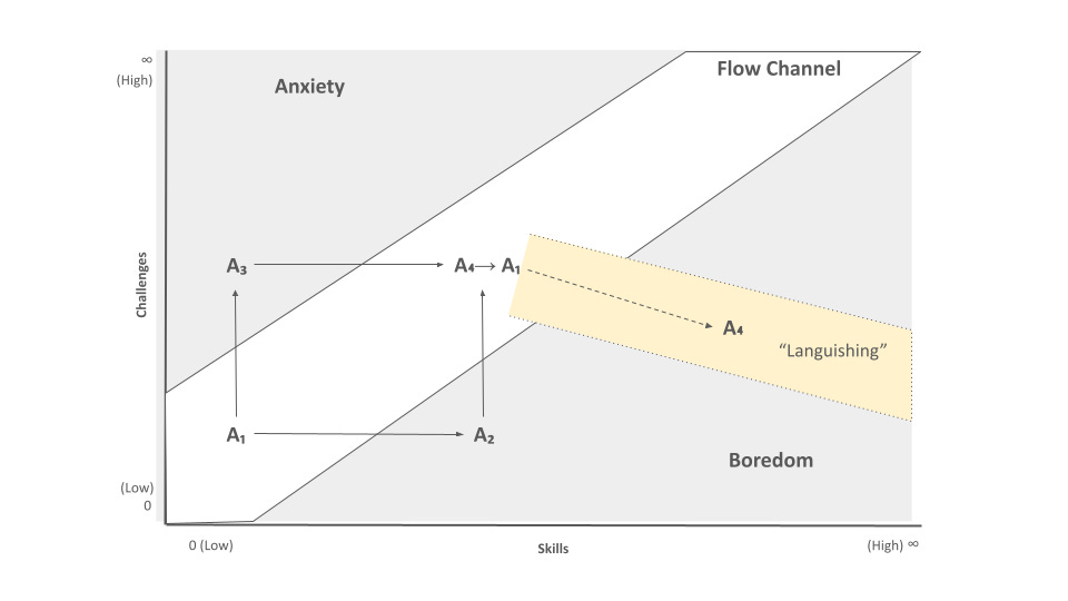 While the goal is to find something that keeps us in the flow channel as we move through our careers, this is easier said than done. When the challenge required and your skills are misaligned, a role can sour, leading you to languish or become stressed.